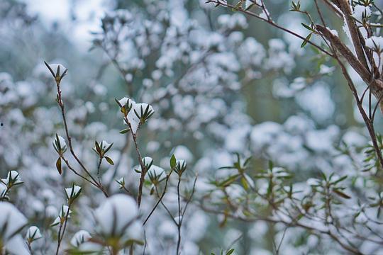 落在香杉树的雪花
