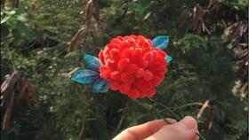 牡丹悲痛欲绝,她决定将自己的银发永远留作纪念。她将银发编织成了一朵牡丹花,戴在鬓边。从此,她的鬓边不再是银白色,而是牡丹红。